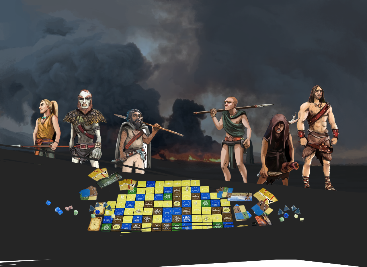 As one of six adventurers, each with their own unique talents, you will fight your way through a vast, unrecognizable land filled with dangers and riches. Your goal is to journey through the landscape of Ancient Sumer and find the 4 Ziggurats and collect all of the Map Cards (either through purchase, negotiation, or theft) that will lead you to the great City of Ur where you hope to defeat Nanna the God of Ur.